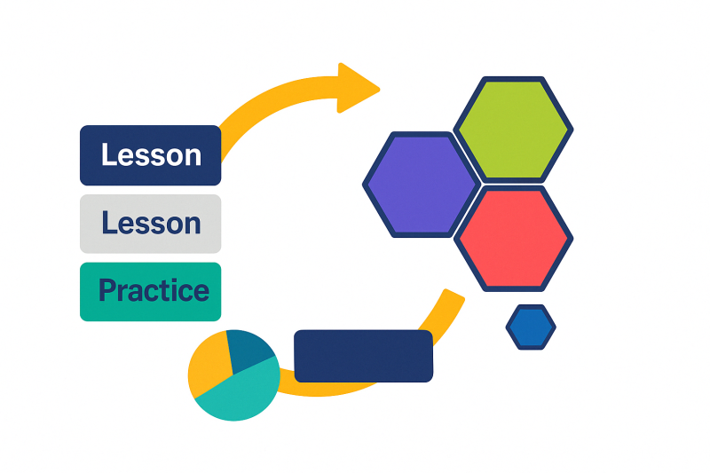 Prescribed learning objectives are broken down into discrete units of content. Each unit is further segmented into multiple bite-sized concepts which are interconnected and sequenced using the knowledge map. Students practice these fine grained concepts in progression with processing time between successive concepts – leading to mastery of the learning objective as a whole more effectively. Furthermore, teachers have the ability to design their own custom learning paths (by cherry picking the necessary segmented concepts) aligned to their instruction or curriculum maps.