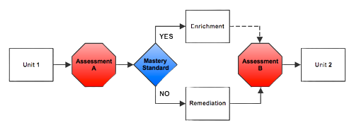 By definition, mastery learning is a method of instruction where the focus is on the role of feedback in learning. Furthermore, mastery learning refers to a category of instructional methods which establishes a level of performance that all students must “master” before moving on to the next unit.